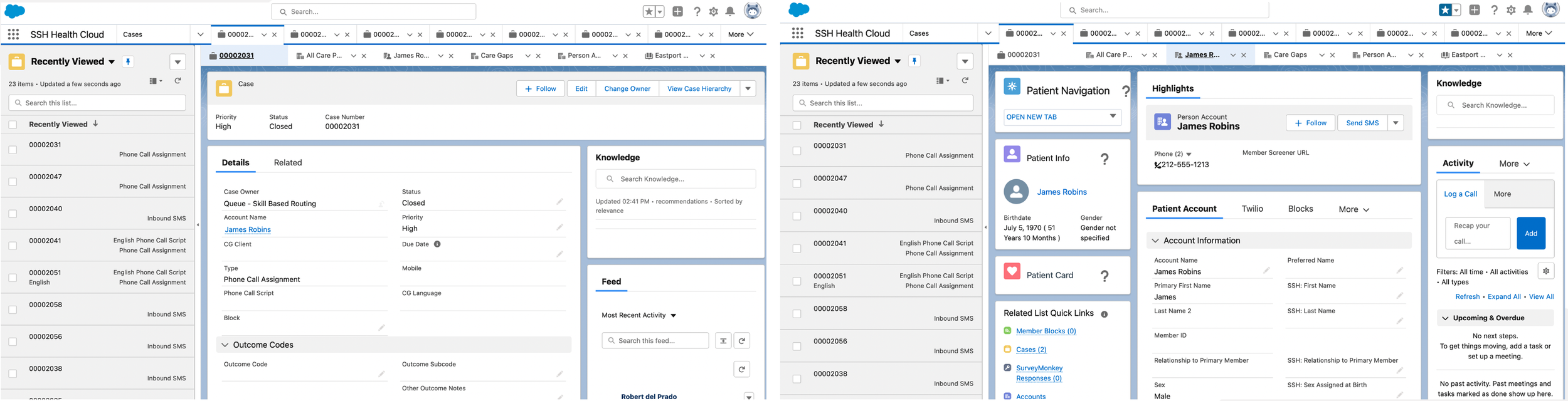 Usability Testing & Validation: Created prototypes with a focus on making important information prominent while eliminating unused features. Conducted usability testing with the same CHGs interviewed initially. Received positive feedback on consolidating information to single screens, progressive disclosure implementation, improved member verification placement, and enhanced SMS message selection capabilities. Views were customized to the job to be done - Call or SMS.